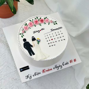 Bánh sinh nhật vẽ hình cô dâu chú rễ và lịch tháng 1 mừng kỷ niệm